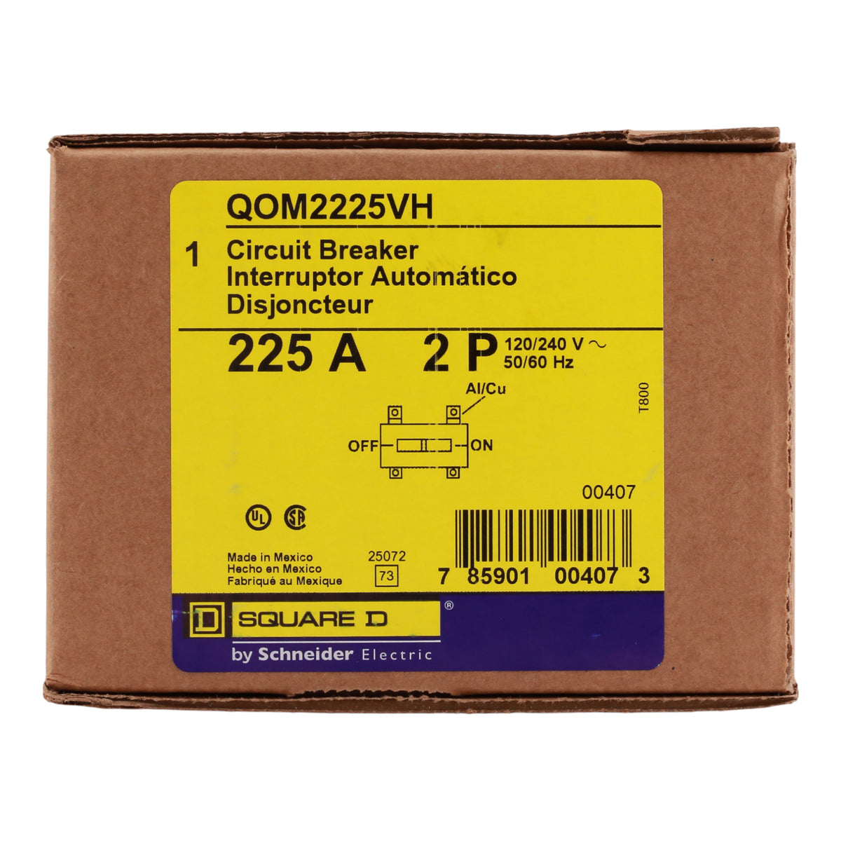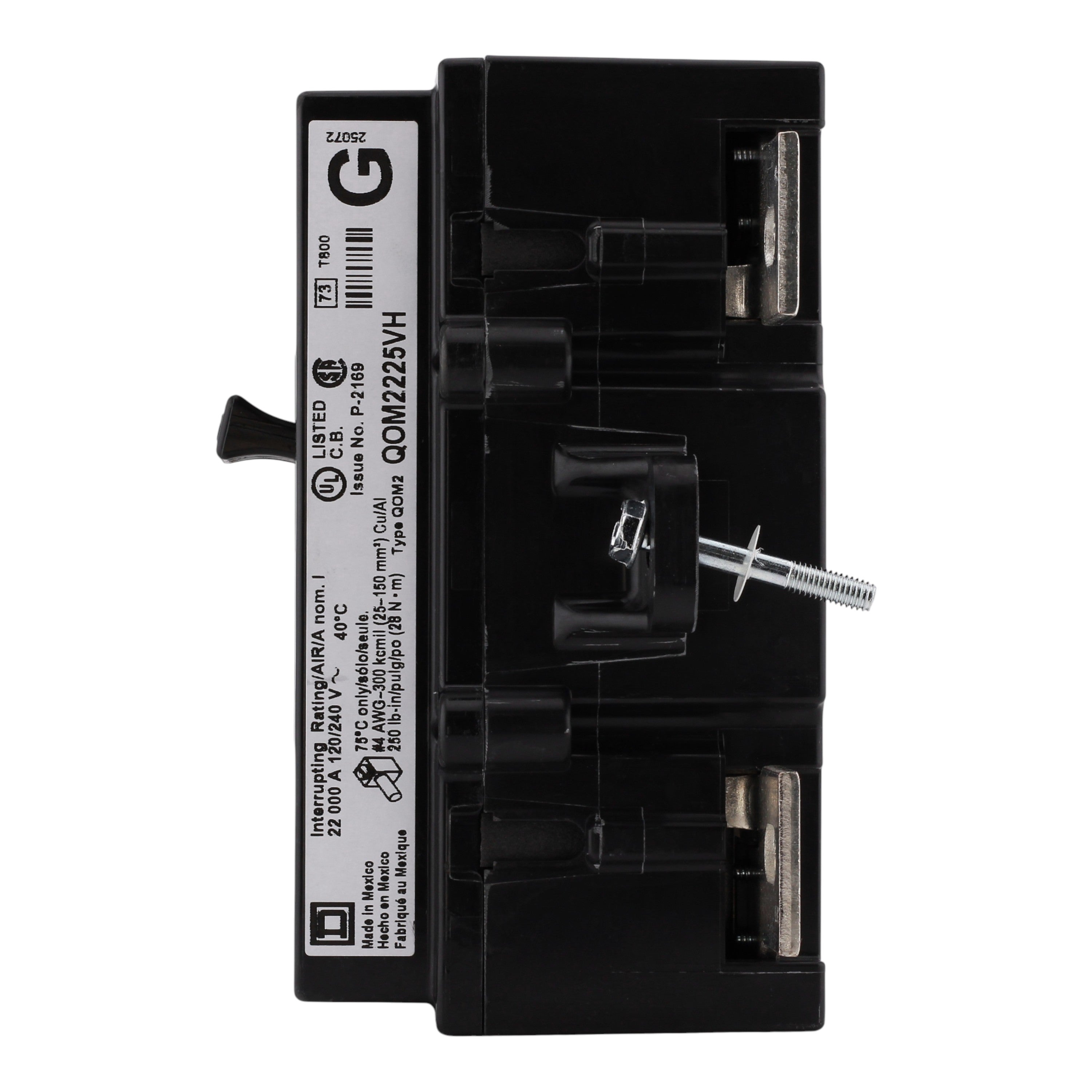 This Square D QO QOM2225VH bolt-on main breaker delivers reliable 225A, 2-pole overcurrent protection and switching for 120/240V AC systems in QO load centers. Featuring a high 22kA interrupt rating, VisiTrip indicator, and thermal-magnetic trip mechanism, it provides superior performance and easy identification of tripped circuits in residential and light commercial applications.