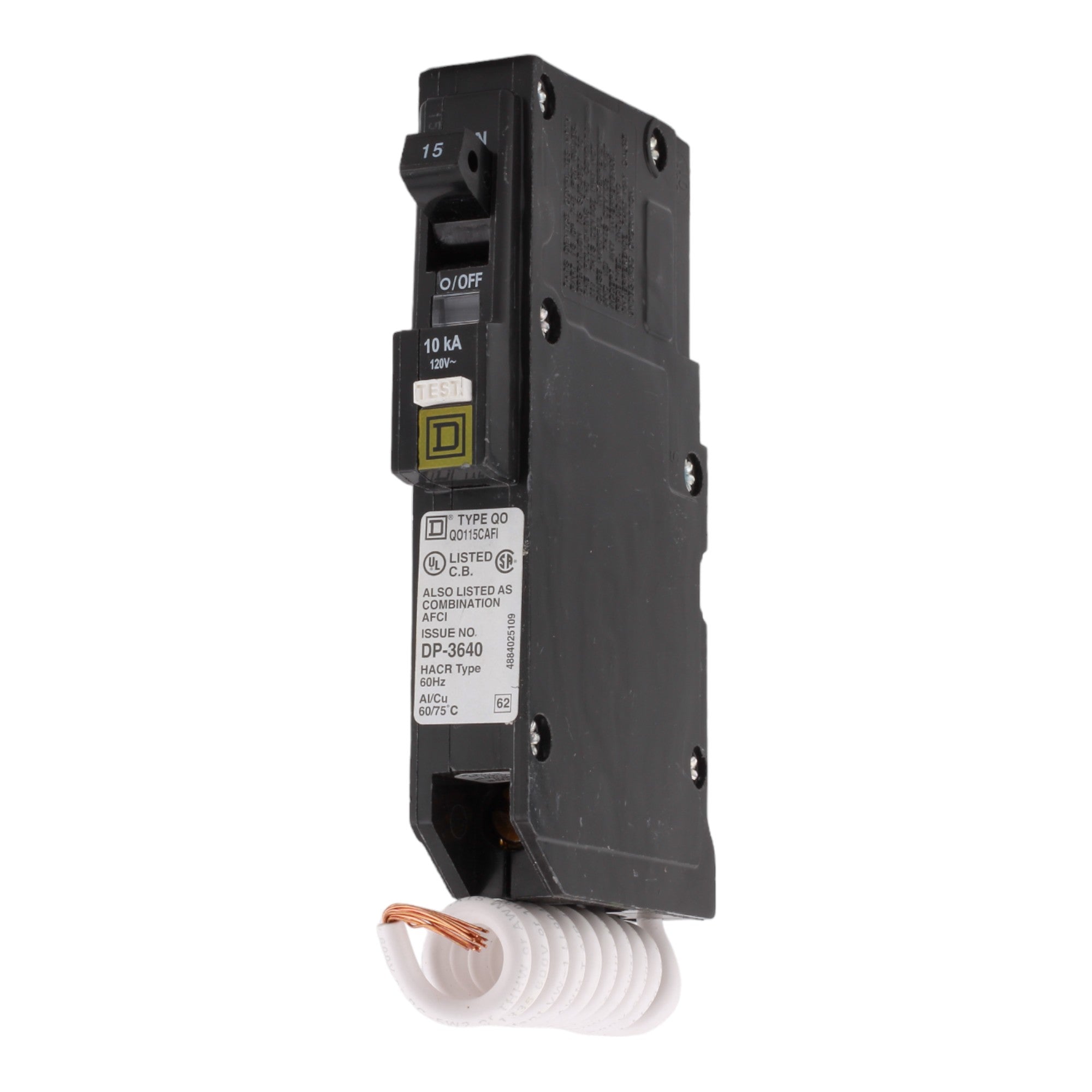 Square D QO115CAFIC 15 Amps 120 Volts Single Pole Combination AFCI Arc Fault Circuit Breaker with Pigtail Plug-In for QO Panels