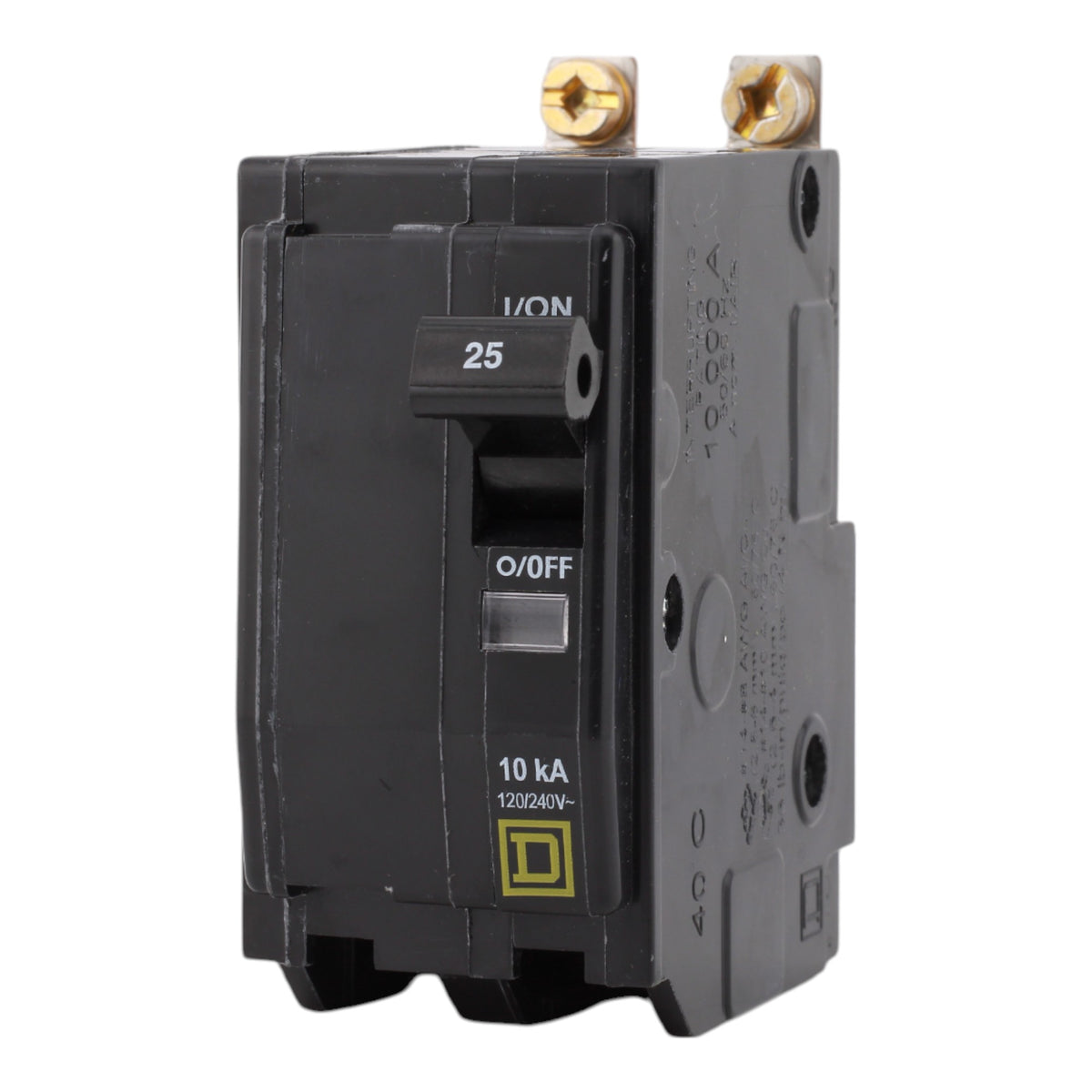 Square D QOB225, 25A, 120/240V, 2-Pole Circuit Breaker, Bolt-On, 10kA Interrupt Rating