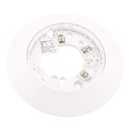 System Sensor B300-6: 6" white mounting base for fire alarm detectors, replacement for B210LP, flanged low-profile design, SEMS screws for easy connections, supports 12-24 AWG wiring.